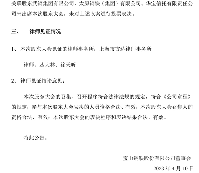 寶鋼股份:寶鋼股份2023年第一次臨時股東大會決議公告