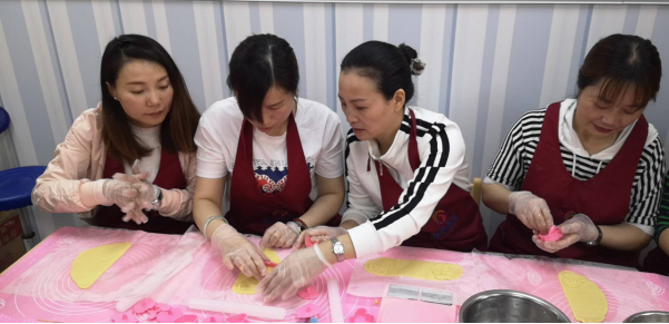 活動開始,輔導老師指出一塊美味的蛋糕不僅可以消除饑餓感,還會激發人體內在的幸福感,進而為一天工作帶來動力。隨后向女職工們逐一介紹了烘焙器皿的名稱及用途,并對紙杯蛋糕、趣味餅干等甜點制作進行了講解,提示了過程注意事項。接著女職工們大展伸手,同事們平時或是開慣行車、或是習慣鍵盤,但在香甜軟糯的面團前也絲毫不遜色。很快,一個個造型別致的小點心在靈巧的雙手下逐漸成型,當甜點載著希望被放進烤箱時,大家似乎也憧憬著未來與幸福。隨著時間一點點的流過,甜點的積聚、受熱、蓬松,散發出誘人的香氣時,女工們忘記了疲勞,感受到了生活的滿足與甜蜜。