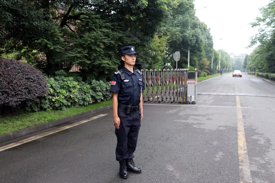 完成夜班交接班,立馬整理著裝進入規范執勤狀態,帥氣、威武。員工進出廠門高峰期快到了,面對人員車輛進出最多的1號門,他已經沒有兩年前剛來時的緊張了,但最怕有員工打卡時動作慢造成大門擁堵。