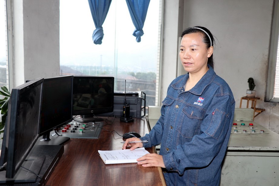 剛剛統計完產量又回到中控室操作翻卸鐵精粉,兼做的事情又多且來回跑。當班長八年了,工作很辛苦,但她說心理是充實的,也要帶頭干好。