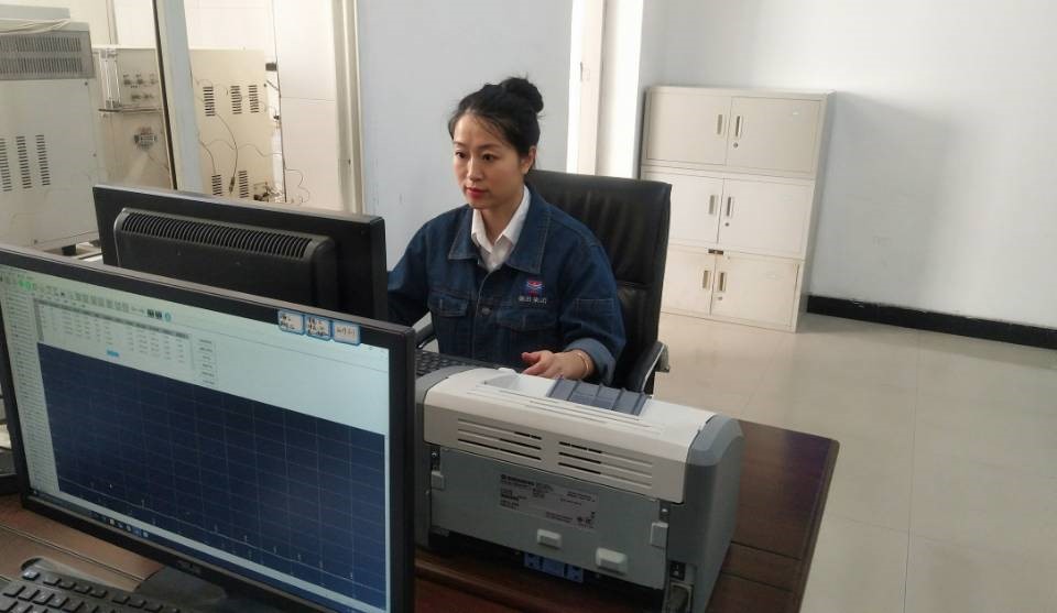 她正在分析高純氬的化驗數據,保證合格的產品才能出廠。她在崗位上堅持了10年了,雖覺得工作很熟練,但一直在堅持買書提高自己的理論水平,更好的體現自己在崗位的價值。