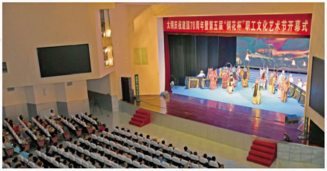 曹志福在開幕式上致辭。他說,公司在這里隆重舉行慶祝新中國成立70周年暨第五屆“鋼花杯”職工文化藝術(shù)節(jié)開幕式,這是公司廣大干部職工文化生活中的一件大事,是公司深入貫徹落實習近平新時代中國特色社會主義思想,培育和踐行社會主義核心價值觀,弘揚民族精神和時代精神,繁榮職工文化的一項重要舉措。太鋼“鋼花杯”職工文化藝術(shù)節(jié)自2011年創(chuàng)辦以來,每兩年舉辦一屆,今年已是第五屆。通過藝術(shù)節(jié)活動,充分展示了廣大職工的文化藝術(shù)風采,弘揚了時代主旋律,豐富了職工業(yè)余文化生活,提升了干部職工的精神風貌,推進了公司的企業(yè)文化建設。2019年,是全面建成小康社會的關(guān)鍵之年,也是公司奮力推進新時代高質(zhì)量發(fā)展的重要一年。我們要通過本屆藝術(shù)節(jié)活動,唱響主旋律,傳遞正能量,進一步打造職工文化繁榮興盛工程,扎實推進精神文明和道德建設,激勵廣大干部職工以永不懈怠的精神狀態(tài),奮發(fā)進取,開拓創(chuàng)新,為實現(xiàn)公司全年奮斗目標和改革發(fā)展任務建功立業(yè),以優(yōu)異的成績迎接新中國成立70周年。