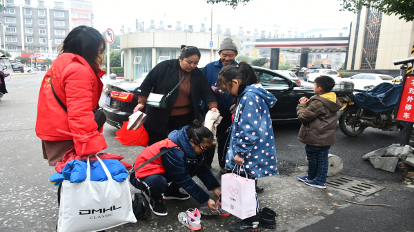 “這孩子可憐哪!”攬著孩子,捏著孩子單薄的衣服,黃艷憐惜地說道。這個小姑娘和她的弟弟無父無母,如今全靠年邁和體弱多病的爺爺照顧,窘迫的生活讓她和弟弟缺乏營養、發育不良,10歲的她看起來宛如一個7、8歲的孩子,令人憐惜。當黃艷了解到姐弟的情況后,她第一時間聯系義工聯,并聯合愛心隊友鄔遠軍,決定共同助養李姓姐弟??吹叫」媚镞€穿著一雙鞋底嚴重脫膠的舊鞋,黃艷心疼地當即從帶來的愛心物資中拿出一雙嶄新的運動鞋給孩子穿上,又挑選了一大包過冬衣服交到孩子爺爺的手中。穿上嶄新的鞋子,孩子的臉上露出了羞澀的笑容。“正合適!”黃艷直起身子,滿意地說道,“走,孩子們,我帶你們吃飯去!”