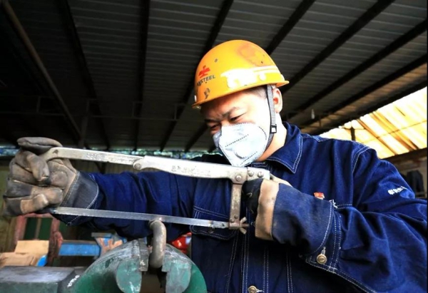 股份公司鈦冶煉廠黨委提高政治站位,加強輿論引導,強化疫情防控工作,號召黨員充分發揮先鋒模范作用,推動生產等各項工作有序進行。圖為2月8日,該廠點維作業區黨員黃海在精心加工設備備件。(通訊員 趙錫超 攝)