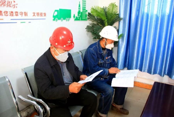 根據攀鋼要求,攀鋼釩資源利用中心黨委積極部署疫情防控工作,給職工發放口罩,落實統計職工及親屬外出返攀情況,對公共場所進行消毒,并組織全體職工學習《班組五分鐘》等宣傳資料。圖為1月29日,該中心轉運丁班班長趙正國(右)與裝貨司機一起學習資料。(通訊員 史俊 攝)