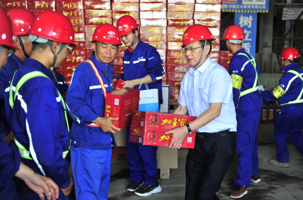 2020年6月20日下午,受集團黨委書記、董事長程并強委托,五冶集團上海有限公司黨委副書記、工會主席倪治壽帶隊深入五冶寶鋼湛江項目施工現場,走訪慰問高溫天氣依然奮戰在生產一線的五冶員工。