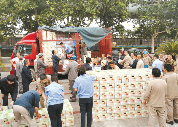 6月22日下午,第一批滿載“扶貧桃”的卡車徑直開到安鋼廠區(qū),鮮桃陸續(xù)發(fā)放到職工手上。