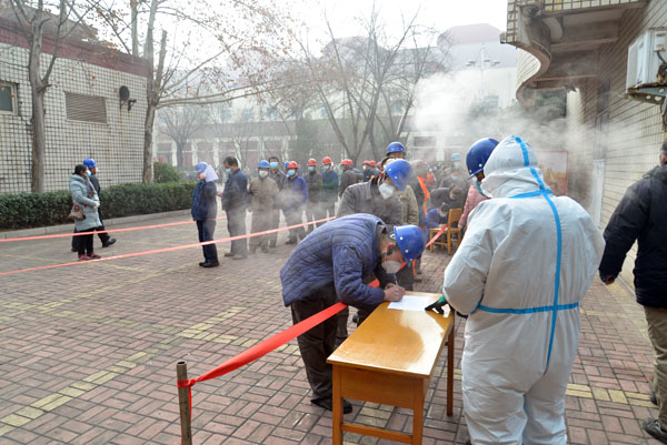 1月11日,安鋼第一煉軋廠職工正在有序排隊做全員核酸檢測(如圖)。連日來,安鋼集團(tuán)聞令而動,全體干部職工積極響應(yīng),主動配合政府部門做好全員核酸檢測工作,做好職工健康碼、行程碼查驗,對食堂、澡堂等人員密集場所進(jìn)行限流,全力以赴筑起疫情“防控墻”。 (王述杰 攝)