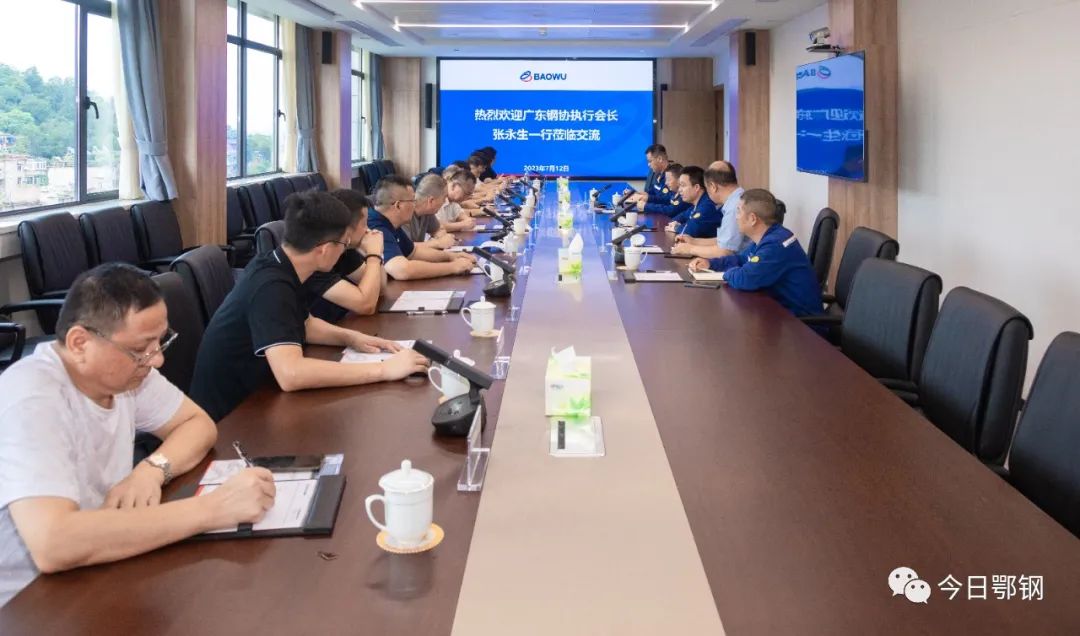 廣東省鋼協客人對鄂鋼推行“一人一表”、績效賽馬等改革創新舉措,以及堅持對標找差、潛心“冬練”,先后獲得高端綠色鋼材智能制造示范工廠、湖北省內首家超低排A級企業等榮譽表示高度贊賞。希望與鄂鋼加強交流,共同應對鋼鐵嚴冬。