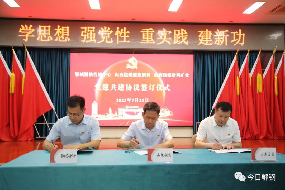7月21日,鄂城鋼鐵營銷中心黨委、山西焦煤煤焦銷售公司黨委、山西焦煤汾西礦業(yè)黨委在晉簽署三方《黨建共建協(xié)議》。鄂城鋼鐵黨委副書記(主持工作)、副董事長王虎祥,山西焦煤煤焦銷售黨委書記、董事長薛軍,山西焦煤汾西礦業(yè)黨委書記、董事長要華偉等領(lǐng)導(dǎo)參加簽約儀式。