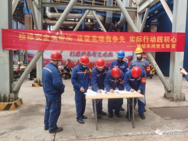 燒結車間黨支部在檢修現場懸掛安全標語,組織黨員學習"黨員身邊無違章"安全倡議書。黨員們紛紛在倡議書上簽上自己的名字,表示一定按要求做到"三帶頭":帶頭樹立安全理念、帶頭遵守黨紀廠規、帶頭弘揚安全正氣,推動檢修安全各項工作落實落地,為順利完成煉鐵系統檢修貢獻力量。(顧嫻)