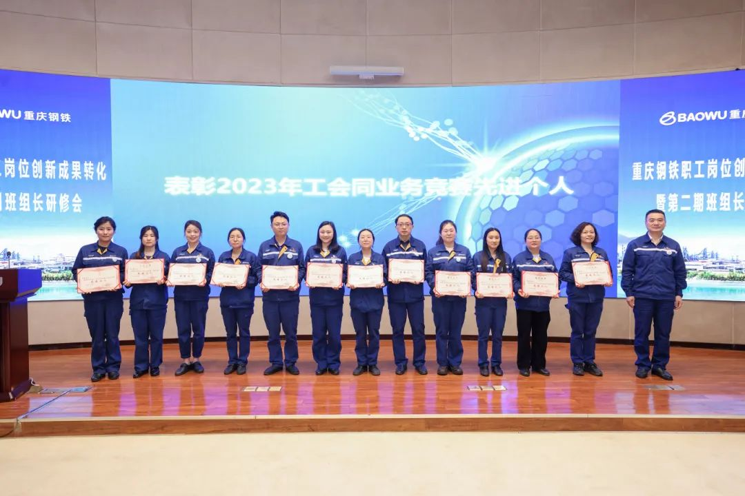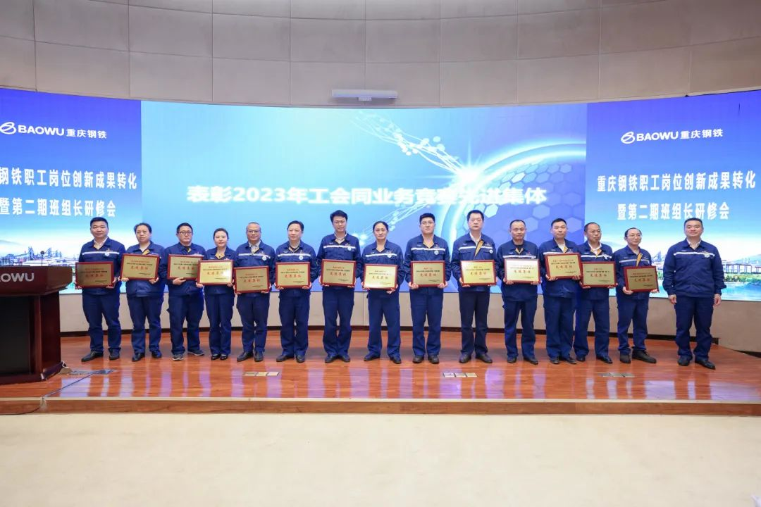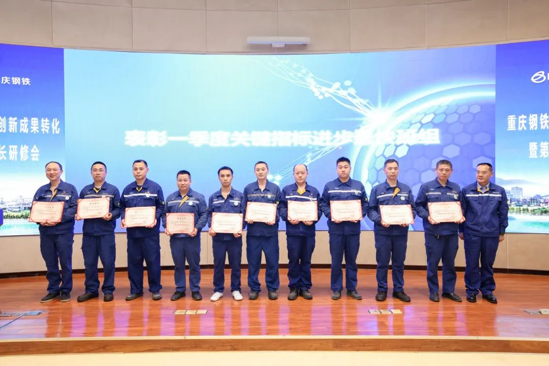 曠高峰代表中南鋼鐵工會,向立足崗位,奮戰在一線的班組員工、創新大咖們表示誠摯的敬意!向獲得中南鋼鐵一季度關鍵指標進步最快班組及重慶鋼鐵2023年度工會同業務競賽的先進個人、集體表示祝賀。對重慶鋼鐵在職工崗位創新成果轉化和班組關鍵指標對標提升工作給予了肯定。