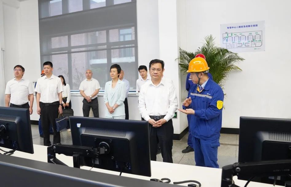 王再華一行參觀了中南股份智慧中心,并詢問了近期生產經營及日常安全生產智能化監管情況,對應急預案制定、應急演練、安全培訓和相關基礎資料進行了檢查。