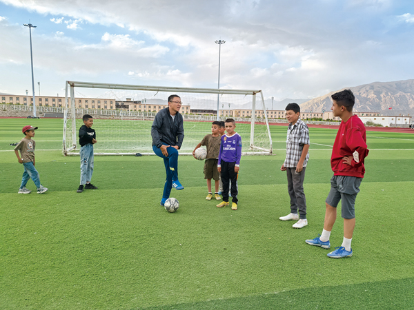 新疆維吾爾自治區塔什庫爾干塔吉克自治縣,地處帕米爾高原東麓,平均海拔超過4000米。塔縣小學是該自治縣里唯一一所城鄉寄宿制小學。塔縣小學90%的學生都是塔吉克族。帕米爾高原條件艱苦,且足球類運動項目教育資源匱乏,讓孩子們的“足球夢”看起來似乎遙不可及。