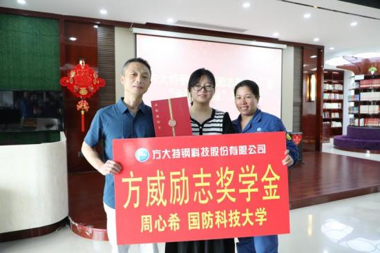 “再過十幾天我將走進(jìn)國防科技大學(xué)的校門,開始新的學(xué)習(xí)生活。感恩父母養(yǎng)育和教誨的同時,也要感謝遼寧方大集團為我提供了一筆不菲的獎學(xué)金。接下來,我將帶著大家的期望和鼓勵,帶著自己的夢想和決心,努力學(xué)習(xí),奮發(fā)向前,爭取在科技的道路上走得更遠(yuǎn),為祖國的繁榮昌盛作出更大的貢獻(xiàn)。”“方威勵志獎學(xué)金”獲得者,方大特鋼員工周立強、施建秀的女兒周心希由衷地說,目光中透著堅定。