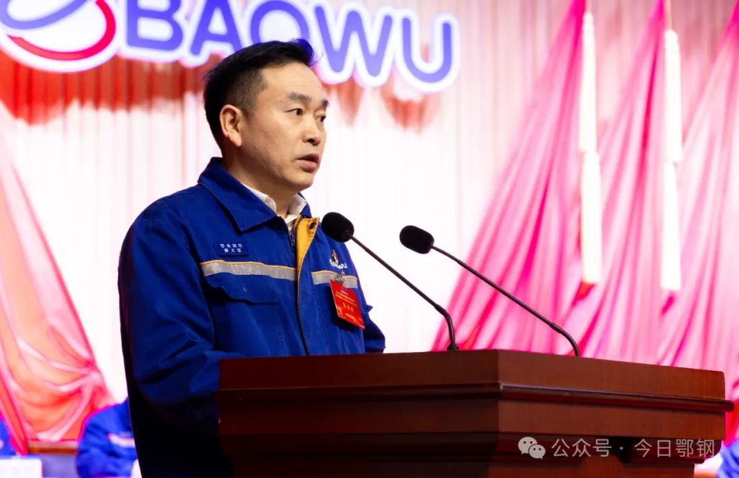 ▲黃大軍作題為《強(qiáng)化精益管理 提升體系能力 為打造綠色智慧高效美麗的新鄂鋼提質(zhì)賦能》工作報(bào)告。