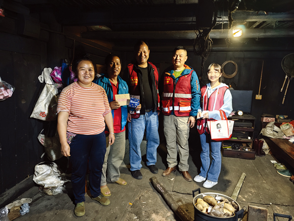圖為林峰(右二)與駐村工作隊員深入貧困戶家中幫助其解決實際困難。