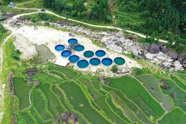 2023年上半年,林峰帶領扶貧工作隊引入一家公司與扶貧村合作社進行村企合作,通過“公司+合作社+農戶”的模式,發展高山冷水魚特色養殖產業。圖為高山冷水魚特色養殖基地。