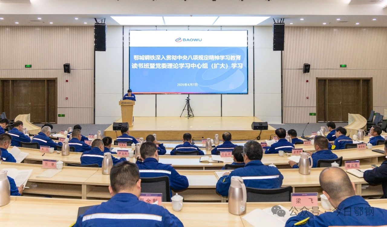 4月7日,鄂城鋼鐵公司舉辦領導人員深入貫徹中央八項規定精神學習教育讀書班暨黨委理論學習中心組(擴大)學習,學習領會、貫徹落實中央八項規定及其實施細則精神,運用由風及腐案例加強警示教育,引導黨員、干部錘煉黨性修養、提高思想覺悟、加強作風建設,永葆黨的先進性純潔性,為持續打造綠色智慧高效美麗的新鄂鋼提供作風保障。