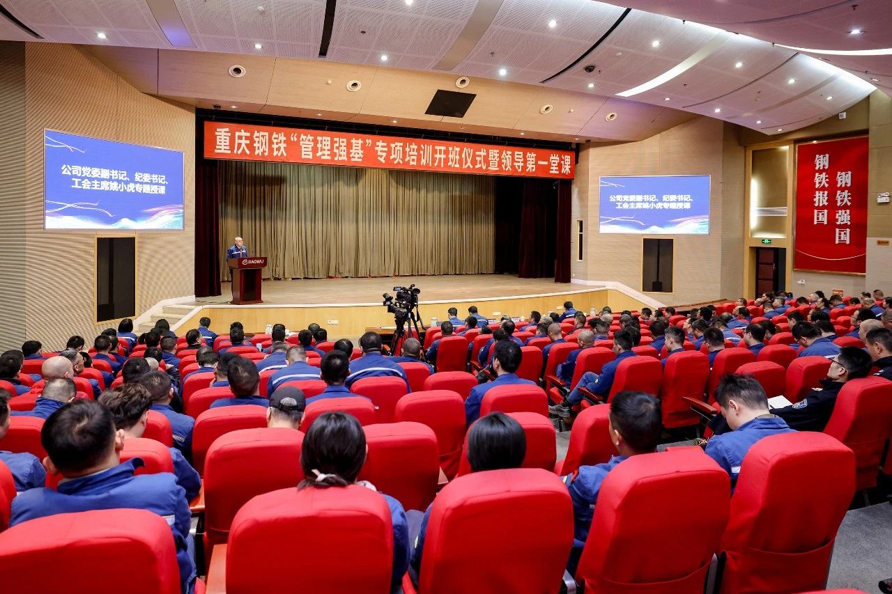 為深入學習習近平總書記關于做好新時代人才工作的重要思想,踐行人才強企戰略,貫徹落實中國寶武“四化四有”和中南鋼鐵“四個全面”要求,3月28日,重慶鋼鐵公司“管理強基”專項培訓正式開班,來自生產一線共174名車間主任、班組長及技術骨干齊聚一堂,開啟了一場刀刃向內、淬煉內功的自我革新之旅。該公司黨委書記、董事長王虎祥出席此次開班儀式并講授第一堂課,黨委副書記、紀委書記、工會主席姚小虎主持開班儀式。