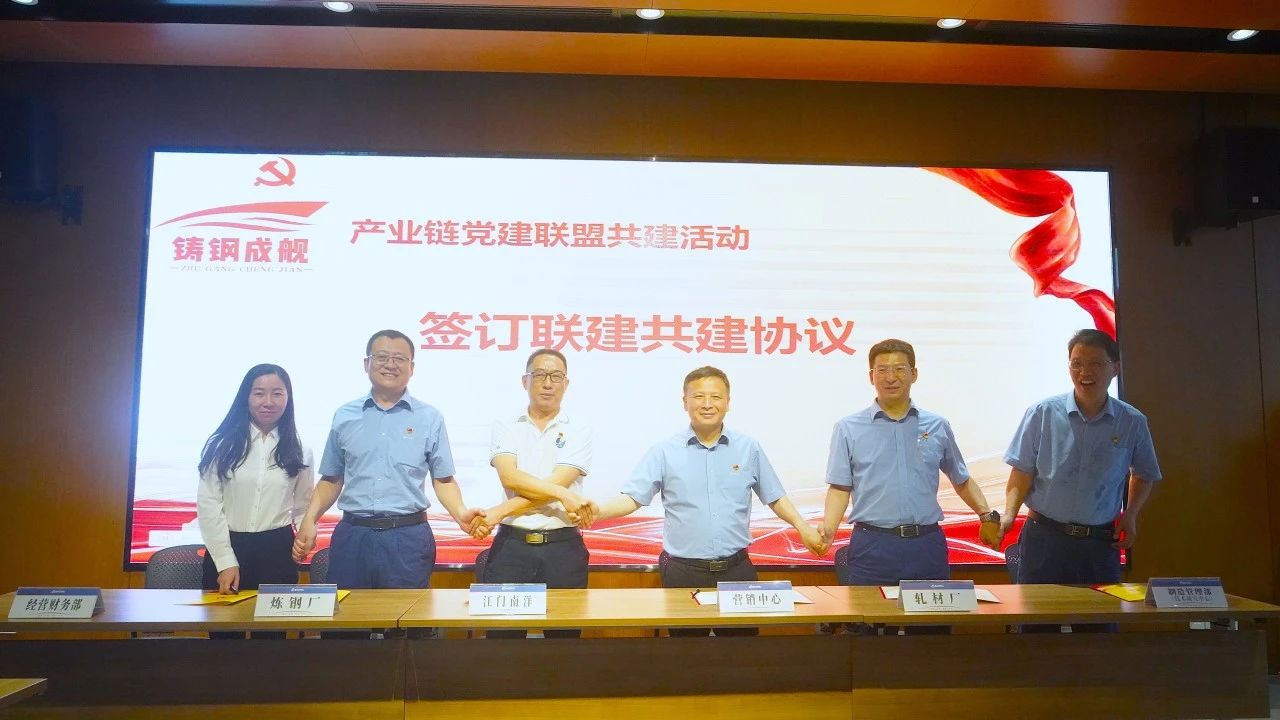活動(dòng)中,中南股份高級(jí)副總裁程曉文,江門南洋黨支部書記、副總經(jīng)理何開劍共同為“鑄鋼成艦”產(chǎn)業(yè)鏈黨建聯(lián)盟揭牌,6家共建單位的黨組織負(fù)責(zé)人簽訂了聯(lián)建協(xié)議。活動(dòng)期間,與會(huì)人員圍繞日常業(yè)務(wù)中存在問題,就如何將黨建融入業(yè)務(wù)展開交流。雙方還就如何靈活制定計(jì)劃排產(chǎn)等事項(xiàng)達(dá)成了一致意見。