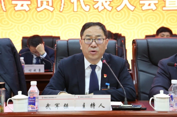 大會主席團成員武軍強、顧興鈞、蔣建波、屈海濤、衛(wèi)軍民、尚巍巍、屈正平、付成勇、雷文博、王奎、房金樂、王志春、張建芳在主席臺就座。