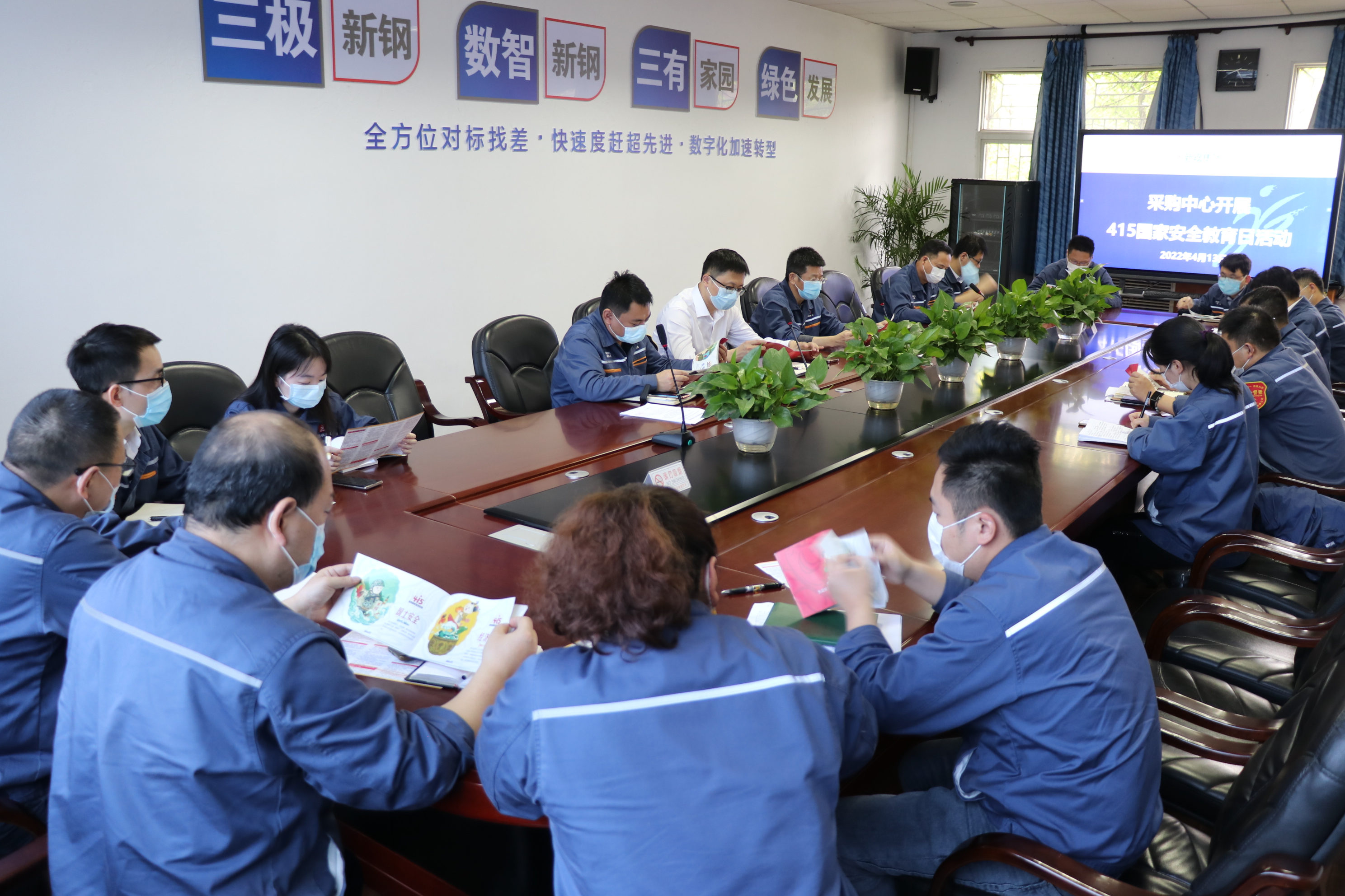 在第七個全民國家安全教育日到來之際,新鋼集團認真組織開展“4·15”國家安全教育日宣傳教育活動,將國家安全教育進企業(yè)、進機關(guān)、進車間、進班組,通過電視、報紙、微信平臺以及利用車間、班組班前會,懸掛橫幅標語、制作宣傳展板,展開全方位、多角度的宣傳教育活動,增強干部職工國家安全意識,筑牢國家安全人民防線,營造“維護國家安全、人人有責”的濃厚氛圍。圖為該公司采購中心集中學(xué)習時情景。(劉東明 張俊)