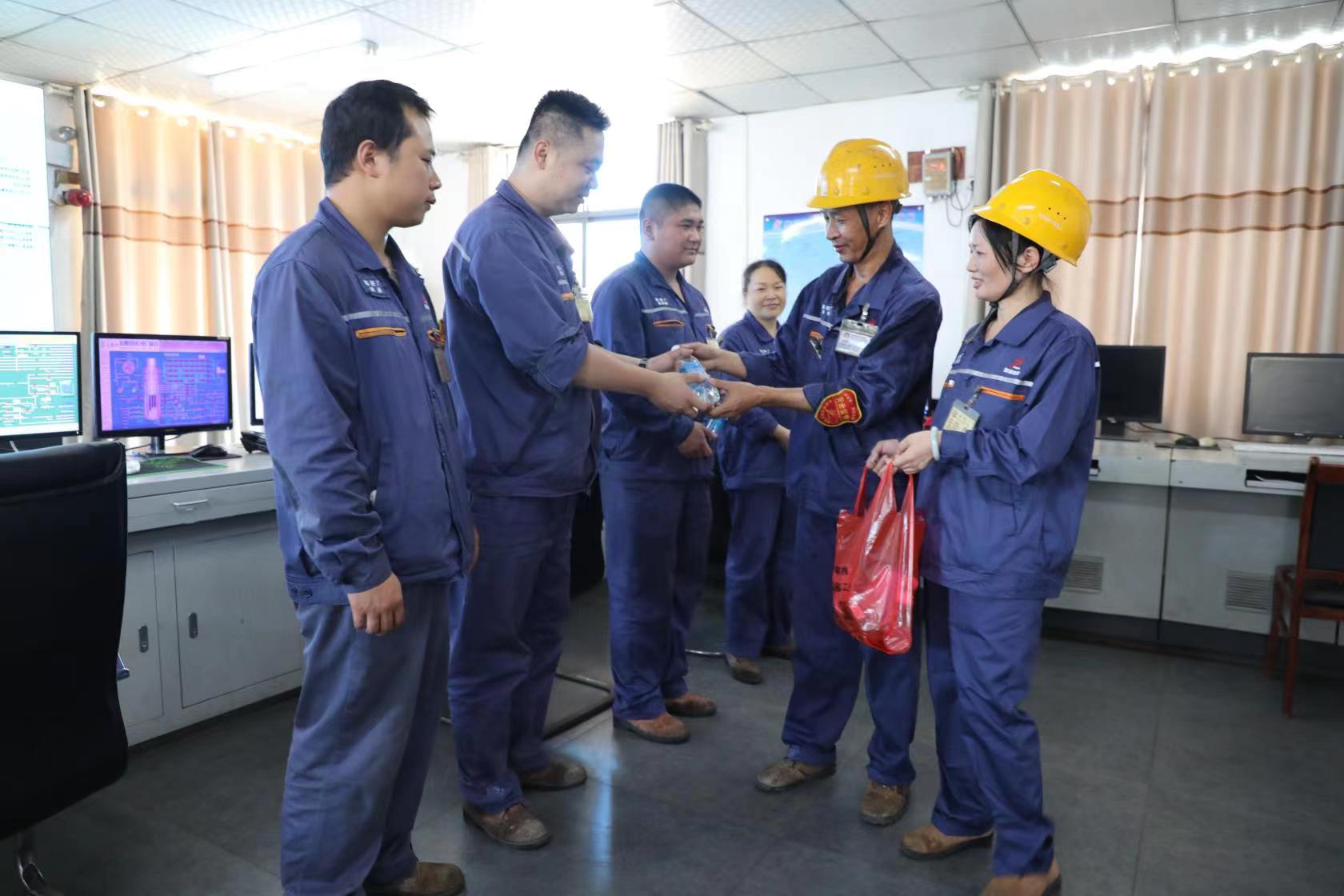 為做細做實防暑降溫工作,新余鋼鐵股份有限公司煉鐵廠從強化防暑降溫硬件設施入手,為高溫一線崗位配置大功率風扇,給高溫崗位添置新空調;同時,及時發放防暑降溫藥品,開展防暑降溫知識專題學習培訓;其次,及時調整高溫時段及露天作業的作息時間,嚴格勞動紀律,督促職工穿戴好勞動保護用品,確保職工安全度夏;此外,該廠還組織“送清涼”活動,并將“送清涼”活動延伸到班組和崗位,激勵高溫崗位職工戰高溫、斗酷暑。圖為煉鐵廠環能作業區乙班負責人正在為崗位職工派送冰汽水和靈丹等防暑降溫用品。(萬新東 胡喜梅 許宏)