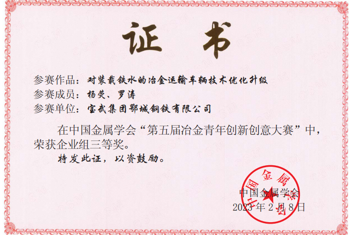 近日,中國金屬學會公布了第五屆冶金青年創新創意大賽結果。鄂城鋼鐵青年科技工作者獲得一等獎1個,二等獎2個,三等獎2個。