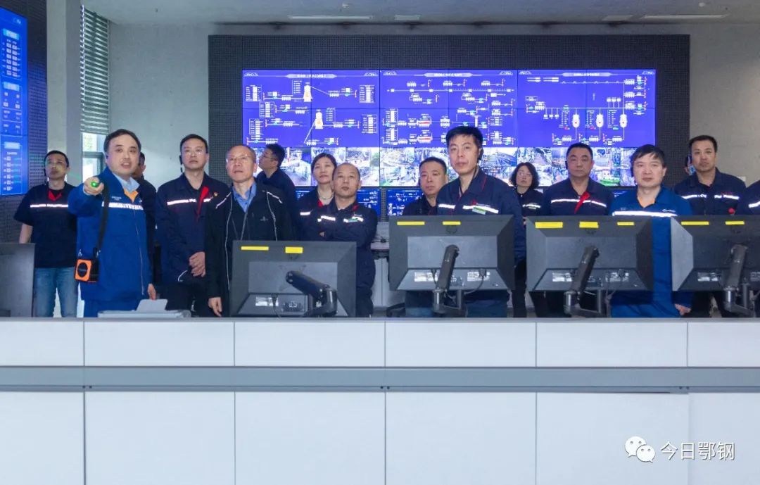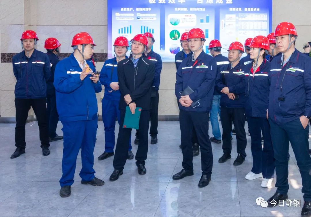 張紀星一行現場參觀了煉鋼廠、軋材廠、煉鐵廠以及操業集控中心等地,對鄂鋼綠色智慧發展情況表示贊賞。