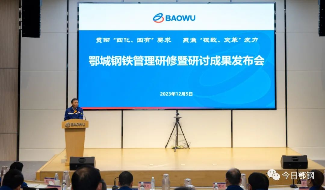 12月5日,鄂鋼公司在匠心園報告廳舉辦以“貫徹‘四化、四有’要求,聚焦‘極致、變革’發力”為主題的管理研修暨研討成果發布會,貫徹落實寶武集團十五期決策人研修精神和中南鋼鐵部署要求,總結復盤2023年工作,提前謀劃2024年思路和舉措,全力打好年底收官戰和明年起步開局主動仗。