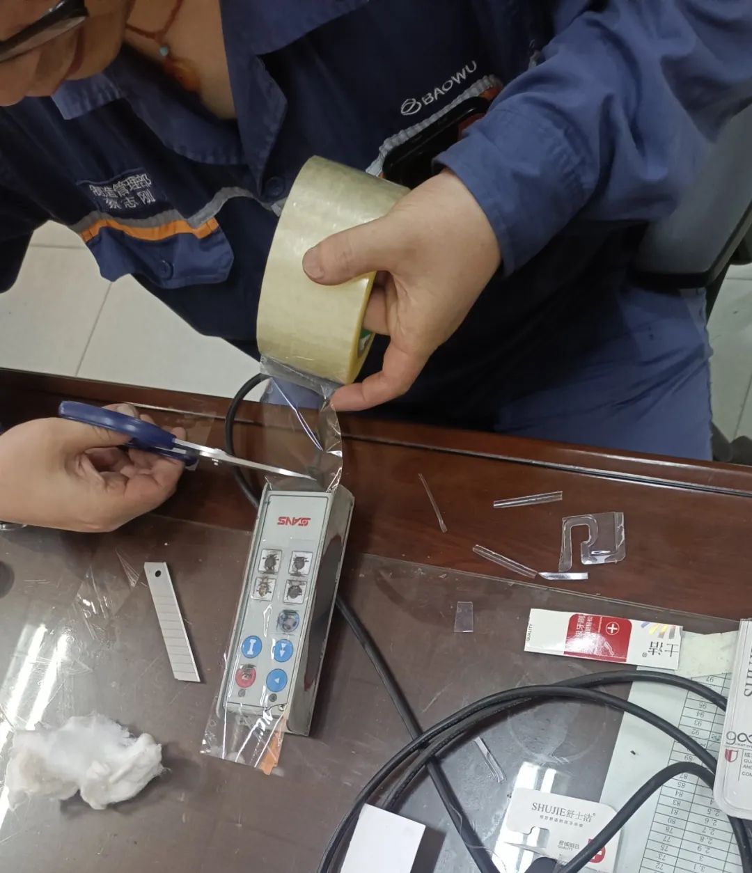 蔡志剛組織創新小組準備啃下這個硬骨頭。他們反復在現場研究操作過程,拆解報廢的操作盒,發現面板破損、點動按鈕損壞,此外其他部件均完好。找到原因后,大家開展頭腦風暴,明確了2項改造措施:制作單面粘膠式塑料面板,破損后粘上去即可換新;自主更換損壞的點動開關。