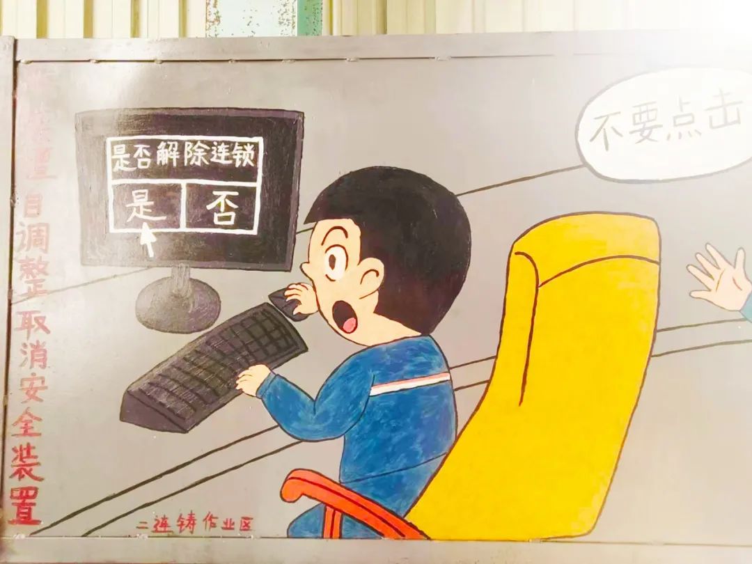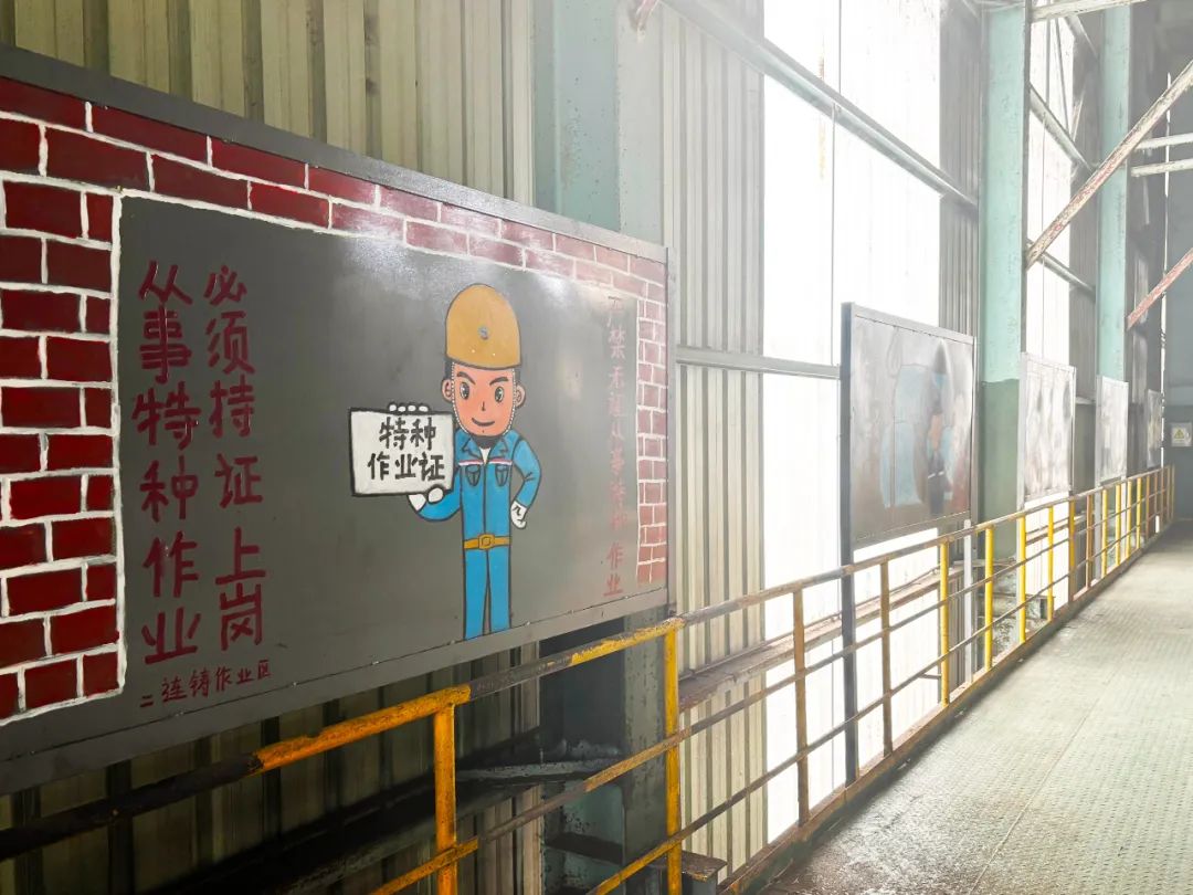 為提高員工安全意識,煉鋼廠二連鑄作業區以十大禁令為主題,自主繪畫文化墻。通過員工唐小真這位“藝術家”的巧手,公司的安全十大禁令不再是冰冷的文字,而是變成了生動形象的畫作,既有教育意義,又給人美的享受,形成一道獨特的風景線!一起來看她的佳作。