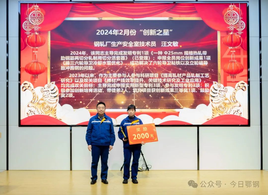 該公司總裁、黨委副書記陸隆文為2月份崗位“創(chuàng)新之星”頒獎。