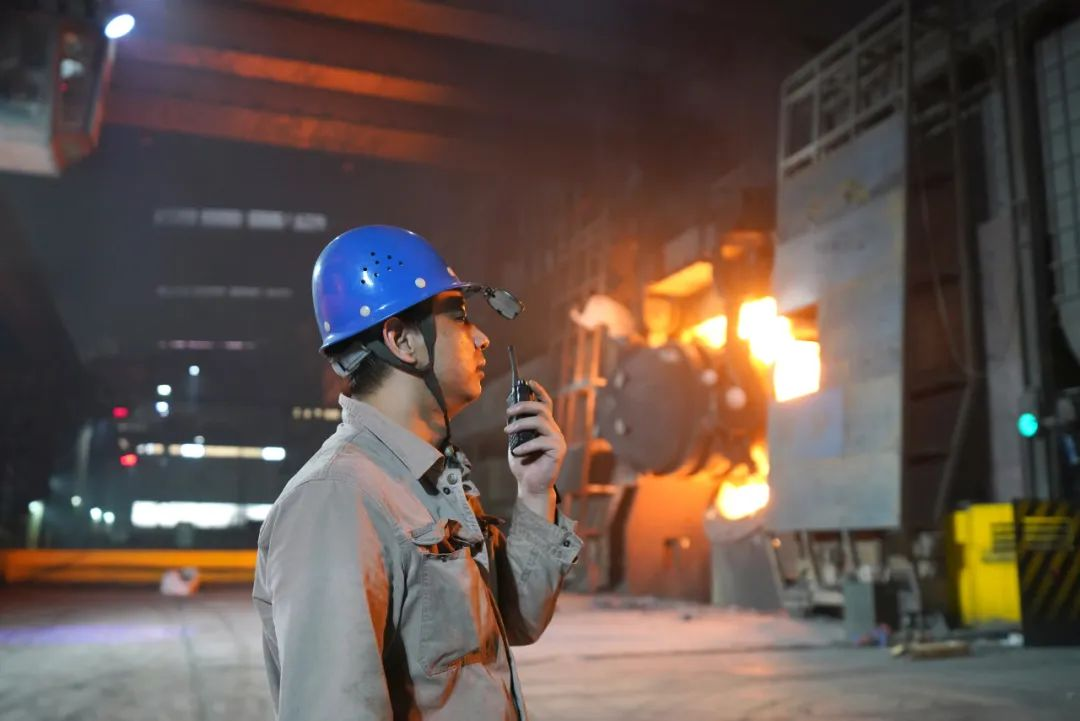 走進方大九鋼煉鋼廠轉爐生產現場,迎面傳來“行車吊運鐵水,請注意避讓”的安全廣播,工作人員正用對講機指揮天車作業,熟練地引導天車進行鐵水倒運。丁富松作為該公司煉鋼廠轉爐二車間乙班值班長,密切關注爐內反應的變化,確保爐子處于最佳狀態。