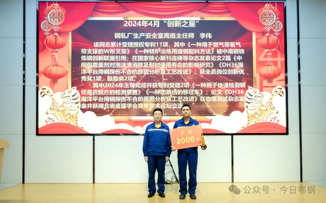 該公司總裁、黨委副書記陸隆文為4月份崗位“創(chuàng)新之星”頒獎。