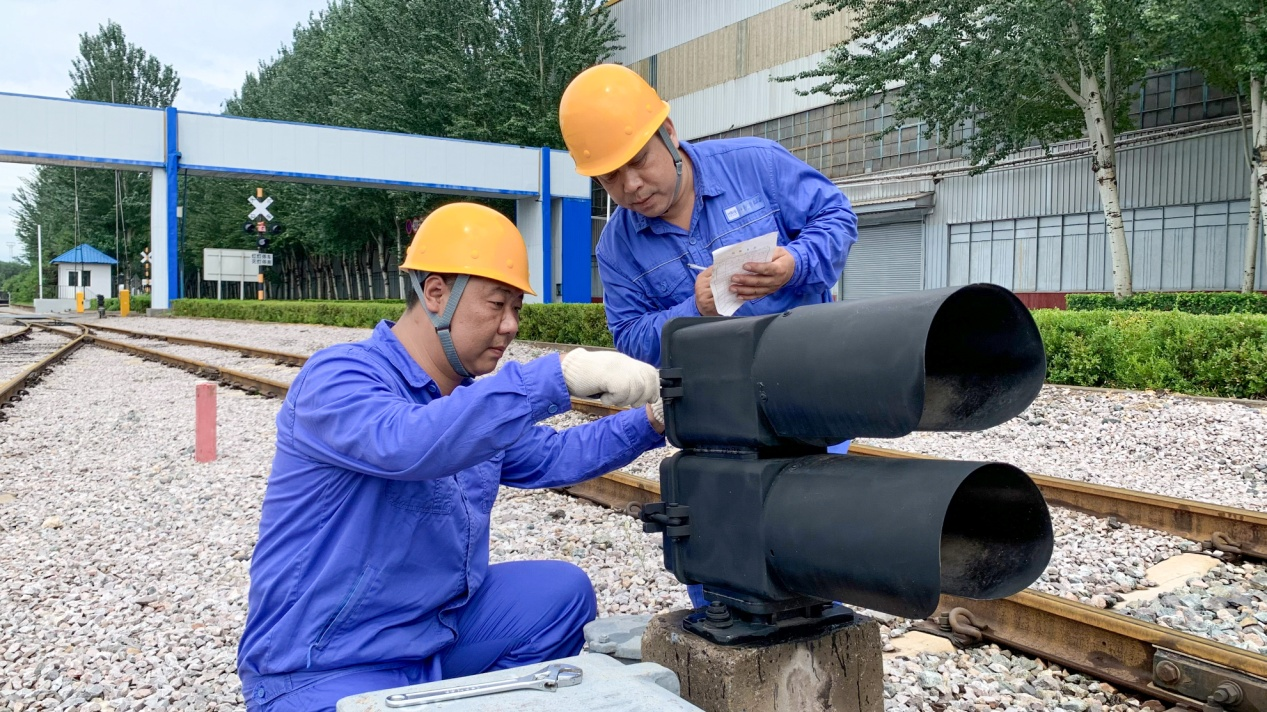 圖為技術人員正在對鐵路信號設備進行技術升級