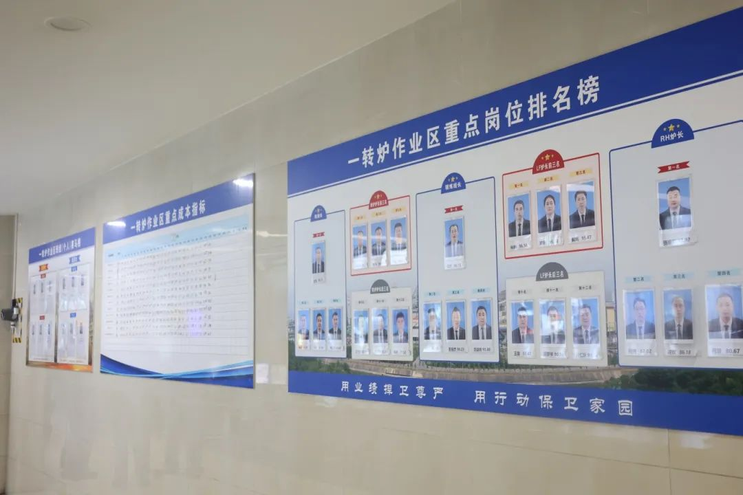 在“鋼花之星”指標看板上,每個班組的班長照片及班組口號都掛墻展示,所有指標以經營管控平臺數據為基準,各工序形成日跟蹤、日評價、日統計、日公告機制,生產技術室建立了“鋼花之星-數據跟蹤”工作群,對核算結果進行監督。“比學趕超”的濃厚氛圍從看板延伸到生產各個角落。