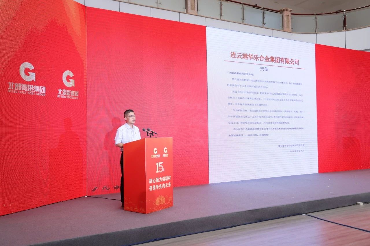 7月23日,北部灣港旗下北港新材料在北海舉行成立十五周年主題活動大會,該集團公司黨委書記、董事長周少波發來賀信,表示熱烈祝賀。北海市副市長、黨組成員孫環志,中國鋼鐵工業協會不銹鋼分會執行會長張志方,集團公司副總經理、北港新材料公司黨委書記、董事長潘料庭出席活動。