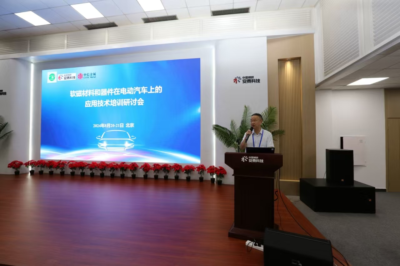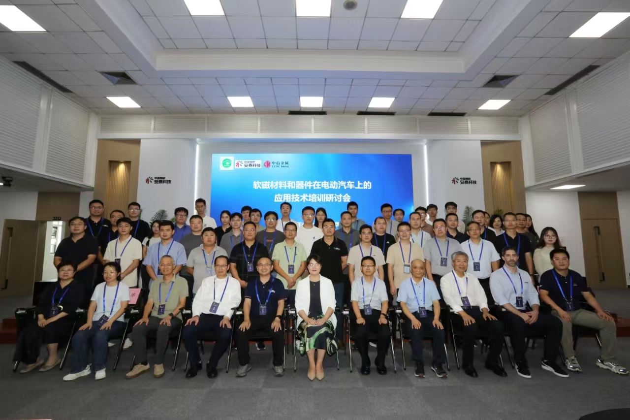 2024年8月20日-21日,由電動汽車產業技術創新戰略聯盟(以下簡稱“聯盟”)與中信金屬股份有限公司(以下簡稱“中信金屬”)和安泰科技股份有限公司(以下簡稱“安泰科技”)共同組織的軟磁材料和器件在電動汽車上的應用技術培訓研討會在安泰科技永豐產業園成功舉辦。中國汽車工程學會汽車電動化研究中心副主任劉國芳女士、中信金屬副總經理兼總工程師郭愛民、安泰科技副總經理王鐵軍、巴西礦冶公司商務專家尤里·米蘭達、北京交通大學教授盧志超,以及來自整車、電機電控、器件企業和高校、科研院所的70余位代表參加了本次會議。