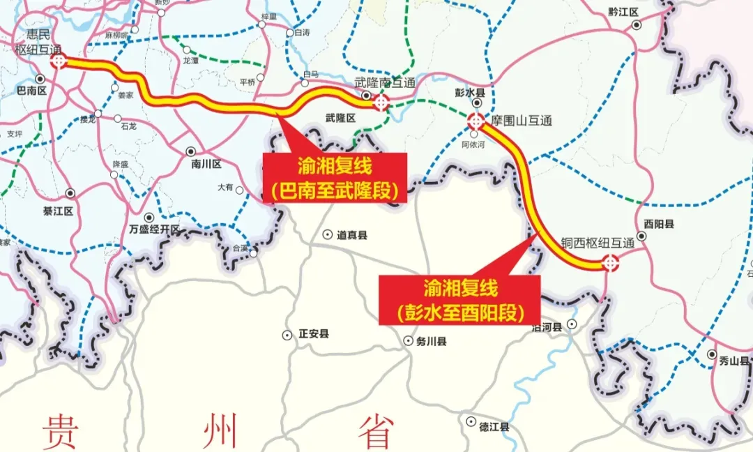 渝湘復(fù)線高速公路總里程280公里,彭酉段路線總長91.581公里,共設(shè)橋梁45座,隧道26座,該路段的通車運(yùn)營,彭水與酉陽之間的車程由2小時縮短至1小時,有效緩解渝湘高速擁堵狀況。并可有效帶動重慶中心城區(qū)至酉陽、秀山沿線經(jīng)濟(jì)發(fā)展,特別是由中心城區(qū)駕車到阿依河、龔灘古鎮(zhèn)、酉陽桃花源景區(qū)將更加快捷,對進(jìn)一步開發(fā)沿線旅游資源、推進(jìn)交旅融合,帶動沿線經(jīng)濟(jì)社會發(fā)展等具有深遠(yuǎn)意義。