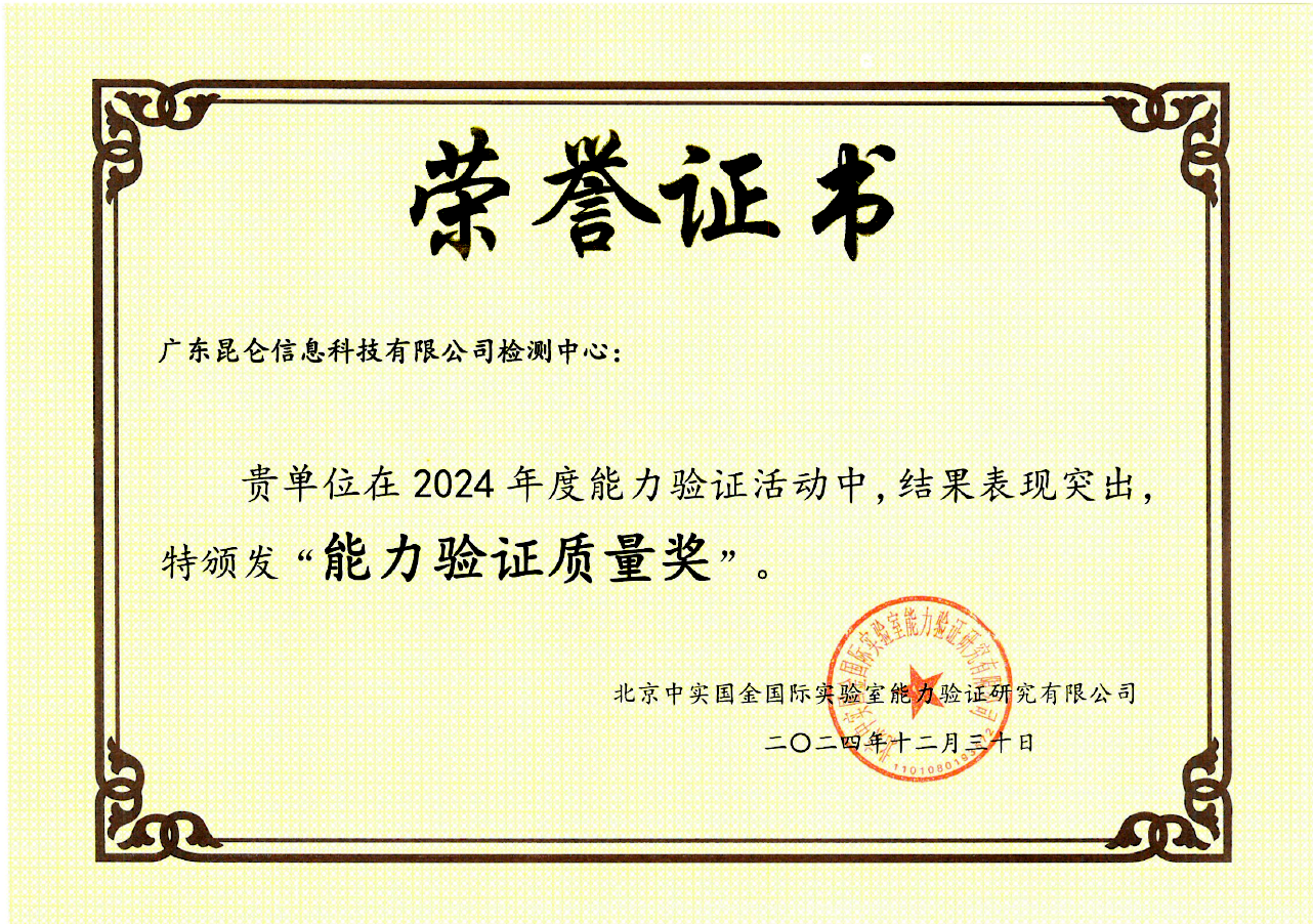 中實國金是中國合格評定國家認可委員會認可的專業從事實驗室能力驗證、測量審核的研究機構,是國內首家具有能力驗證提供者資格的第三方獨立法人機構。“能力驗證質量獎”是中實國金為積極參加并持續獲得優異結果的檢驗檢測機構所設立的獎項,可作為實驗室認可及資質認定評審機構判定實驗室技術能力的重要依據,得到國際相關認可機構的廣泛承認。