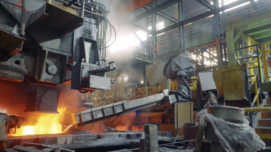 圖為鐳目科技與原韶鋼聯合攻關建成的無人澆鋼平臺運行現場