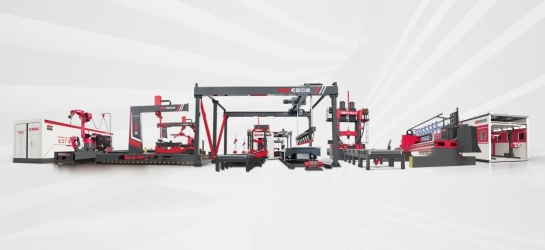 智邁德鋼結構“數字聯營示范工廠”,依托自動化、智能化鋼結構加工設備,為客戶提供集板材存儲、切割、焊接、矯正、拋丸、噴涂、廢氣處理于一體的鋼結構智慧工廠整體解決方案。整個生產流程上全套鋼結構加工設備均為智邁德專利產品,以智能化、高效率為顯著特點。其中裝配式建筑鋼梁全自動一次成型生產線,擁有專利33項,實現了控制系統、機器人、人工智能系統、焊接反應力變形等多個領域的重大突破,能夠一次完成H型建筑鋼梁腹板和翼板的自動上料、組立、焊接、翻轉、矯正等五道工序,整個鋼梁生產過程無需人工操作行車搬運。搭配智邁德“絕影”“烏騅”多絲多弧焊機,焊接速度達到傳統設備的約4倍,成為鋼結構加工行業具有劃時代意義的新方案。
