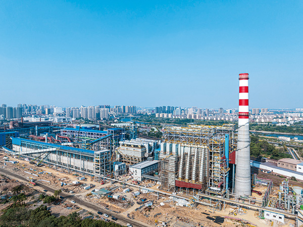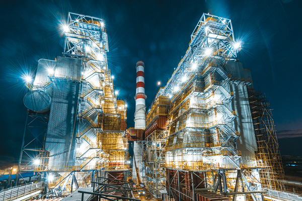 圖為夜幕下正在施工的燒結機煙氣凈化系統脫硫塔,燈火通明。