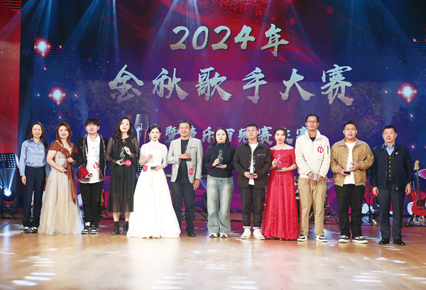 圖為2024金秋歌手大賽暨聲樂百冠賽決賽十佳歌手上臺領獎。