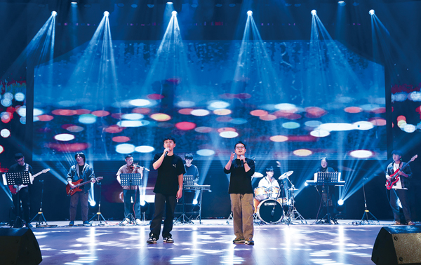 圖為南鋼職工組成的職工電聲樂隊為觀眾帶來了自編自彈的歌曲,充分展示了新時代產業工人的風采。