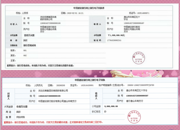 日前,縱橫鋼鐵公司向唐山市豐南區紅十字會專項賬戶捐贈人民幣1000萬元,并捐贈醫用口罩5萬個、84消毒原液10噸、電動噴霧器20臺等物資,用于應對新型冠狀病毒疫情防控工作。