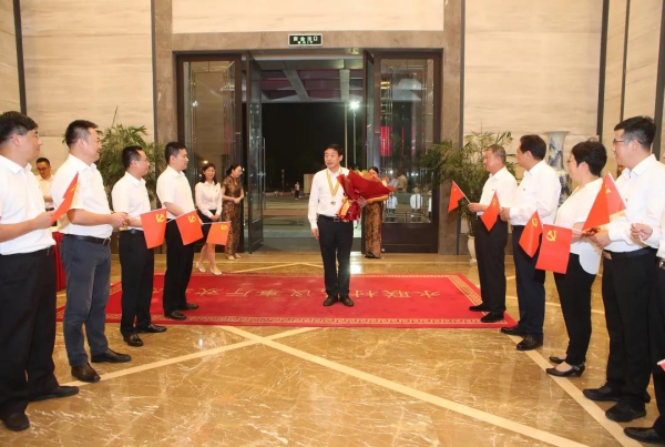 7月1日晚,南豐鎮領導陳磊、陳穩、戴儉、邵滸,永鋼集團董事局主席吳耀芳等董事局、總裁班子成員,永聯村、永合社區黨委班子成員在永聯議事廳,熱烈歡迎吳惠芳載譽歸來。