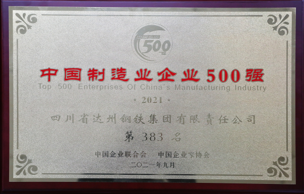 近日,中國企業聯合會、中國企業家協會發布了“2021中國制造業企業500強榜單”。榜單以全國制造業企業2020年度營業收入為依據進行排序,四川省達州鋼鐵集團有限責任公司以1947436萬元營收總額上榜2021年中國制造業企業500強名單,位列第383位。